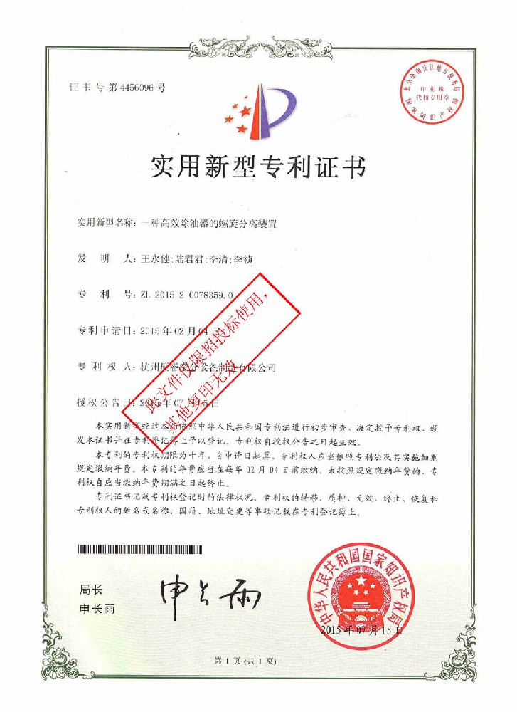 專利證書15